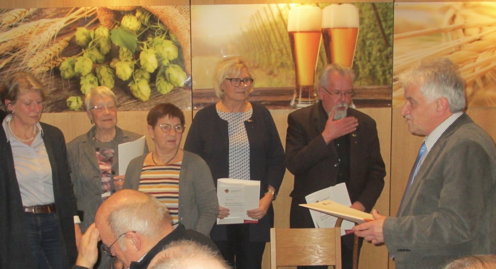 Für 40 Jahre wurde Anton Haid geehrt und für 50 Jahre Christa Hauler und Hildegart Schaupp. Seit 60 Jahre ist Hermann Maier-Wörz Mitglied im Albverein, angemeldetdurch seinen Vater im alter von 12 Jahren. Mit der silberne Vereinsehrennadel würdigte der Albverein die Tätigkeit von Anne freudenreich, Hildegard Müller und Hedwig Wieser beim Betreuuungsdienst im Wanderheim Burg Derneck.