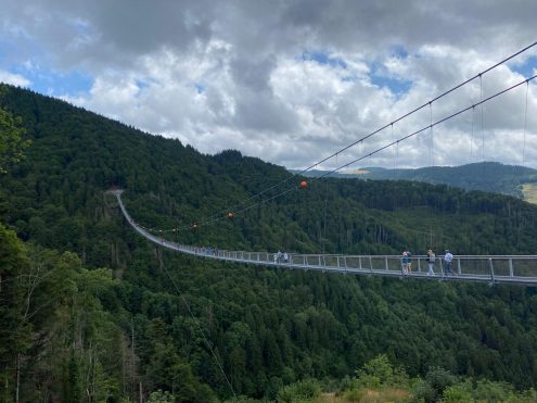 Wir fahren mit PKW zu unserem Hotel Silberdistel in Hinterzarten. Nach Zimmerbezug starten wir mit der S- Bahn zu unserer ersten Wanderung, die uns nach Todtnau führt. Über die Hängebrücke, „Blackforestline“, bestaunen wir die Todtnauer Wasserfälle von oben, danach erkunden wir den Wasserfall auf Wanderwegen und Aussichtsplattformen und wandern hinunter nach Todtnau, von dort fahren wir mit Bus und Bahn zurück zu unserem Hotel.